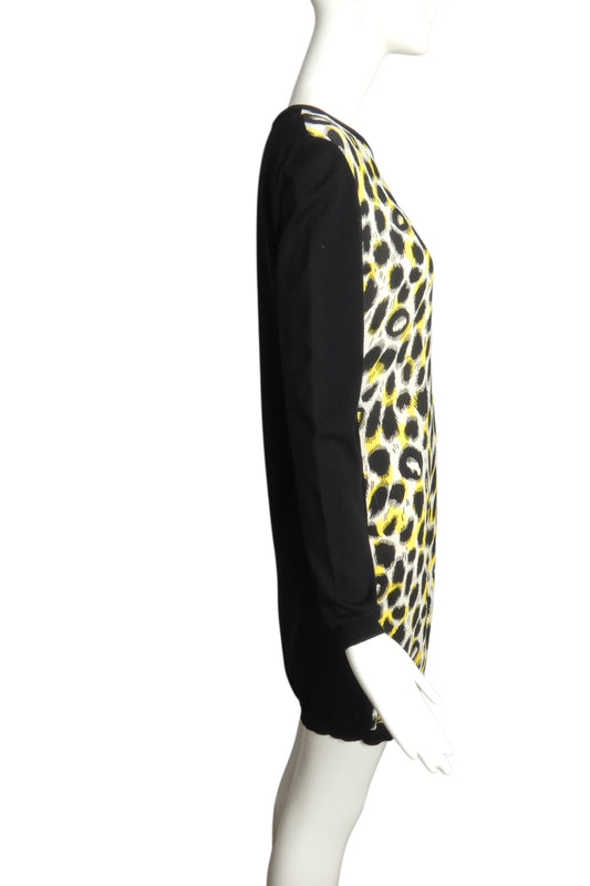 1980 Brown Print Wool Knit Hoop Dress, Size 4