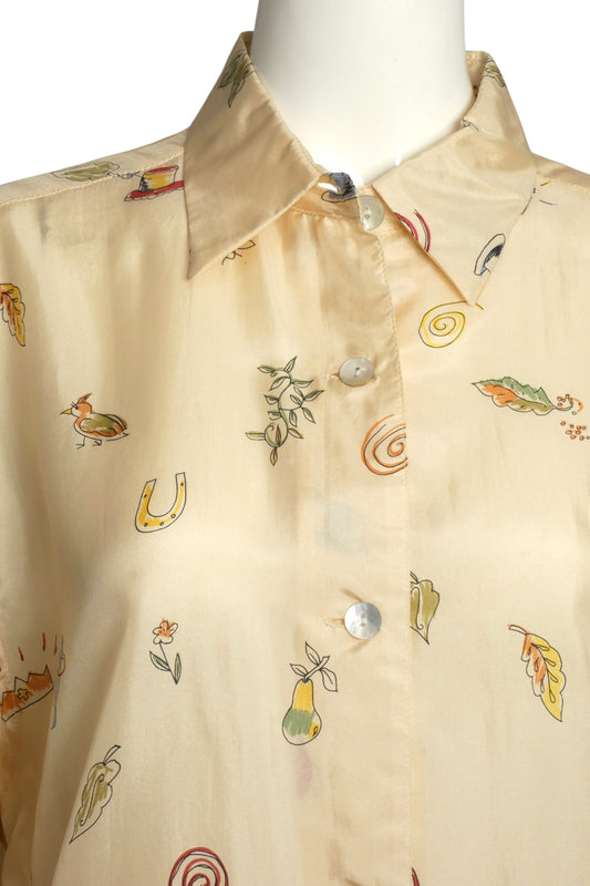TODD OLDHAM- 1990s Print Silk S/S Blouse, Size 14