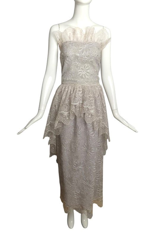 GIORGIO SANT'ANGELO- 1983 4pc Silver Lace Cocktail Ensemble, Size 4