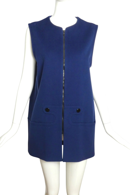 PIERRE CARDIN (HAUTE COUTURE) - 1990 Navy Wool Zip Front Coat, Size 6