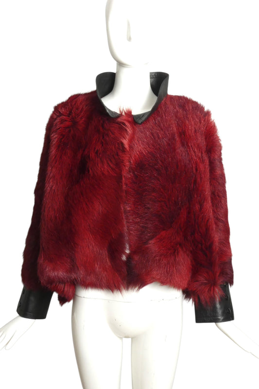 PIERRE CARDIN - 1970s Burgundy Fur & Leather Coat, Size 4