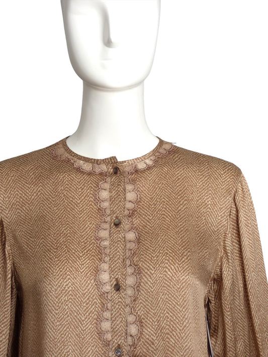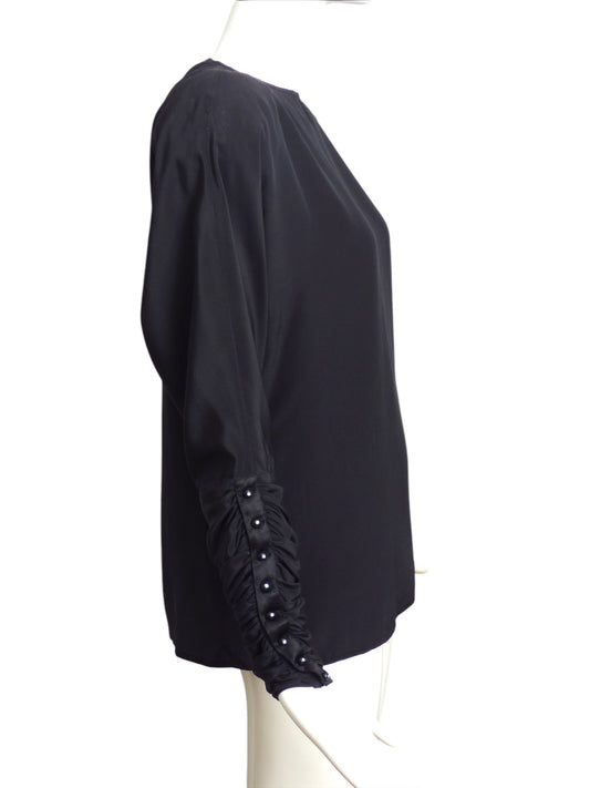 GIANNI VERSACE- 1980s Black Shirred Silk Blouse, Size 8