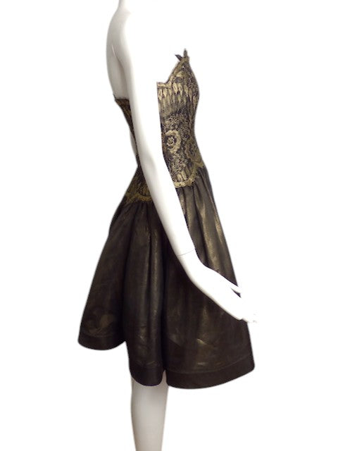 GIANNI VERSACE- 1986 Linen & Satin Dress, Size 4