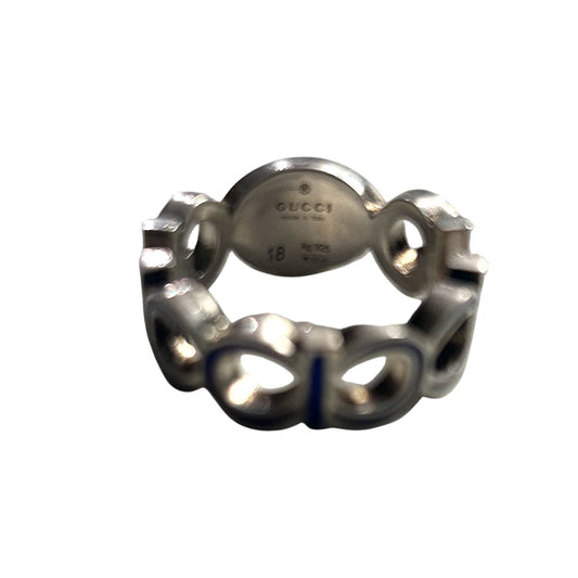 GUCCI- Sterling Silver & Enamel Ring, Gucci Size-18