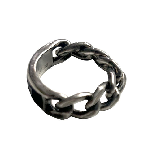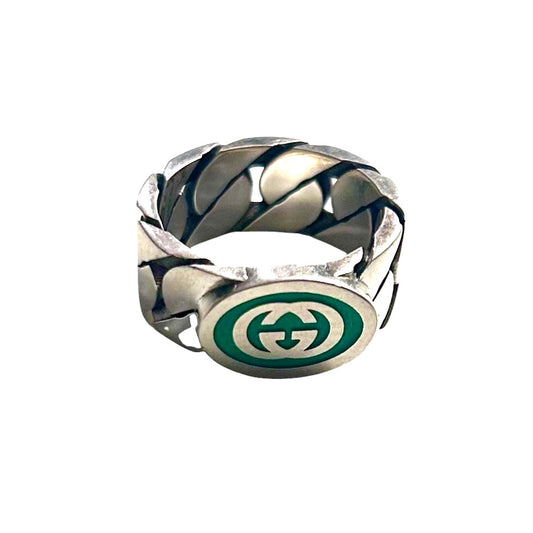 GUCCI- Wide Sterling Silver & Enamel Gourmette Chain Ring, Gucci Size-16