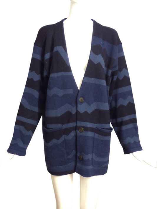 ISSEY MIYAKE PLANTATION- 1991 Wool Stripe Cardigan, Size-Medium