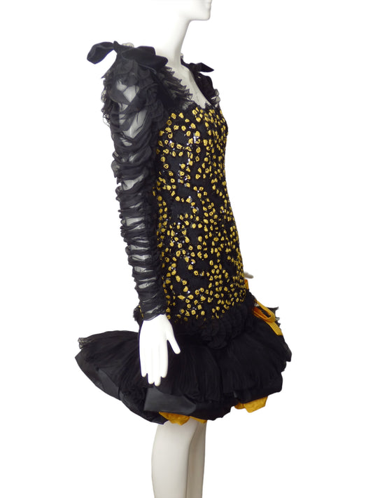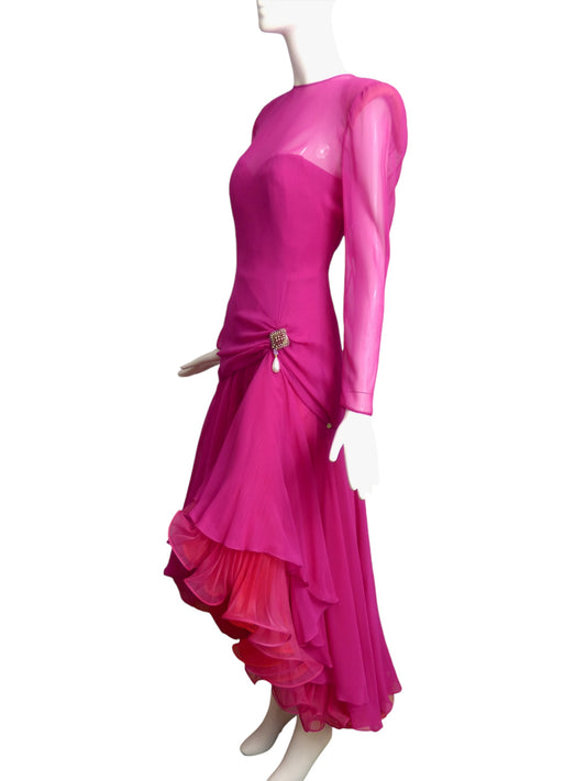 MIGNON- 1980s Ruffle Chiffon Evening Gown, Size 8