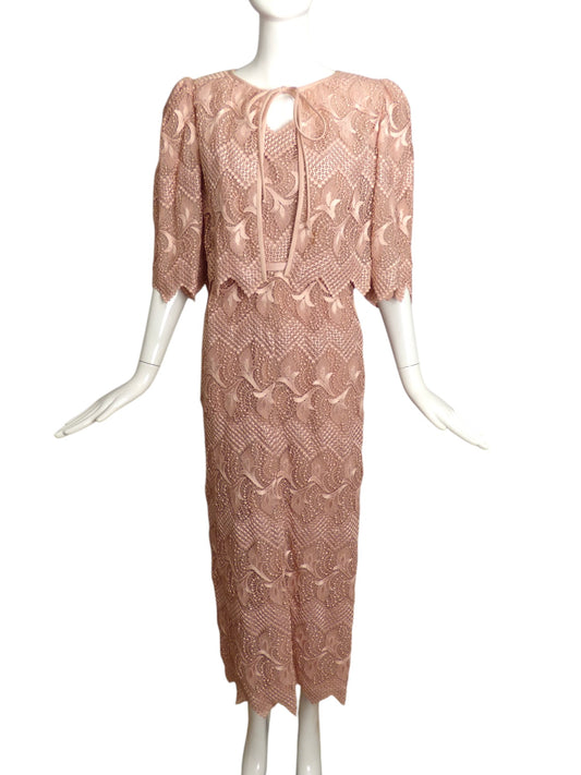 MICHAEL NOVARESE- 1980s Pink Lace Gown & Jacket, Size 6