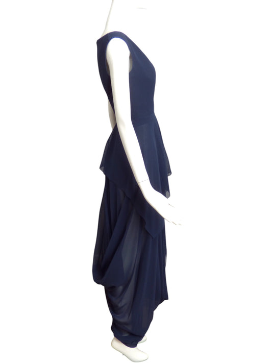 OCIMAR VERSOLATO- 1990s Navy Draped Chiffon Gown, Size 6
