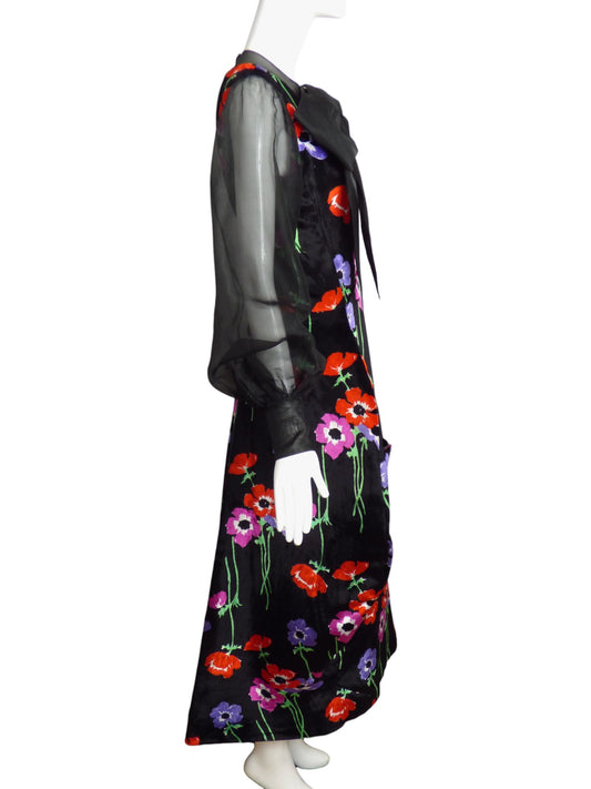 ARNOLD SCAASI- 1970s Velvet & Organza Floral Gown, Size 6