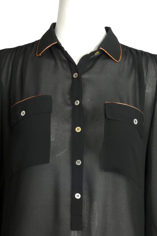 DIANE VON FURSTENBERG- 1970s Black Lace Blouse, Size 10