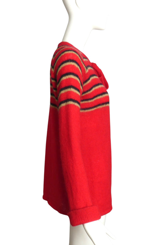 CREATION PIERRE CARDIN- 1970s Red Striped Wool Cardigan, Size 6