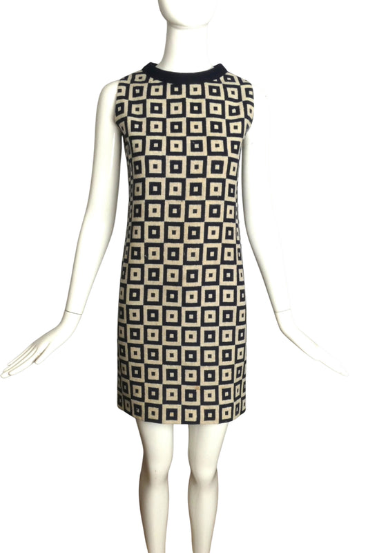 OSCAR DE LA RENTA- 1970s Print Knit Dress, Size 10