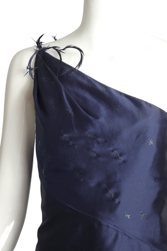 JACQUES FATH- 1998 Navy Tafetta Trained Evening Gown, Size 10