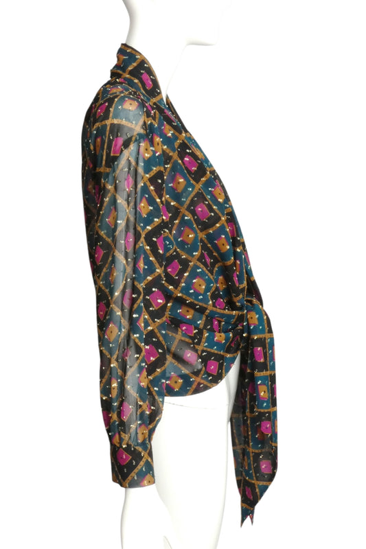 PIERRE CARDIN-1990s Georgette Print Blouse, Size-8