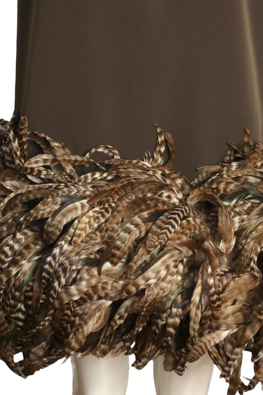 PIERRE CARDIN (HAUTE COUTURE)-2005 Brown Crepe & Feather Party Dress, Size-4