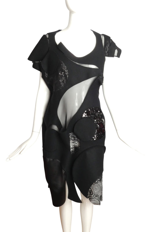 JUNYA WATANABE- 2014 Black Felt & Sequin Cut Out Dress, Size 8