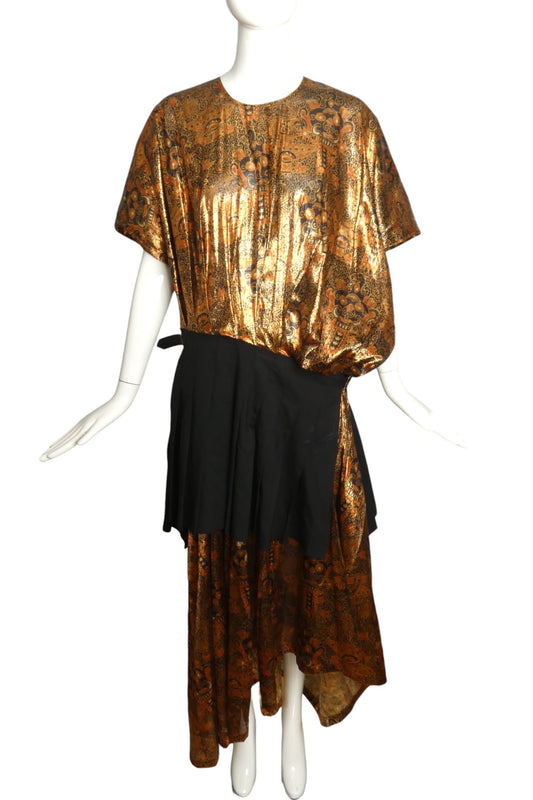 JUNYA WATANABE- 2022 Metallic Lamé & Cotton Pleat Dress, Size Small