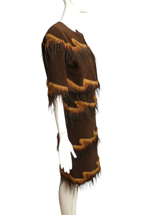 PIERRE CARDIN HAUTE COUTURE- 2004 Fur Trimmed Knit Skirt Suit, Size 8