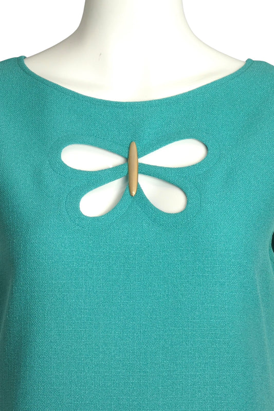 PIERRE CARDIN HAUTE COUTURE- c.2000 Turquoise Rayon Knit A-Line Dress, Size 8
