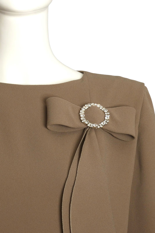 PIERRE CARDIN HAUTE COUTURE- 1990s Taupe Silk Cocktail Dress, Size 12