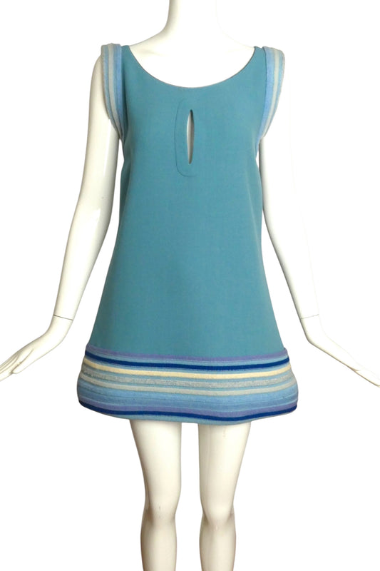 PIERRE CARDIN HAUTE COUTURE- Blue Wool Knit Shift Dress, Size 4