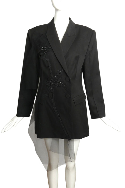 HUISHAN ZHANG- 2024 Black Beaded Wool Blazer, Size 10