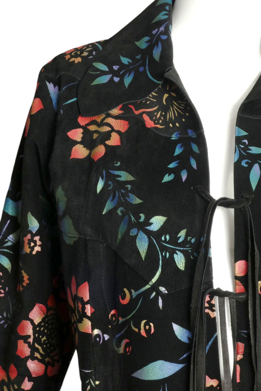 1970s Painted Floral Suede Jacket, Size 6