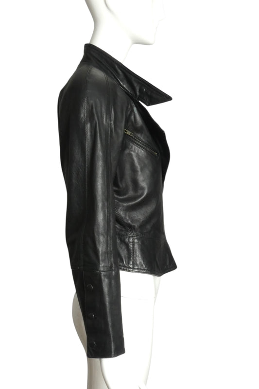 MICHAEL HOBAN- 1980s Black Leather Biker Jacket, Size 6