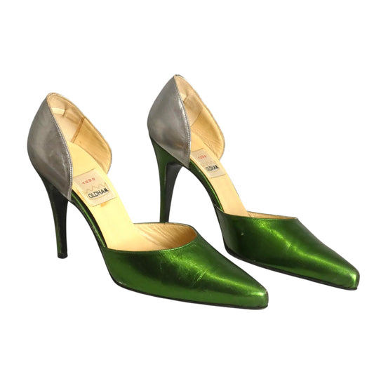 TODD OLDHAM- 1990s Green & Silver Metallic d'Orsay Pumps, Size 37.5