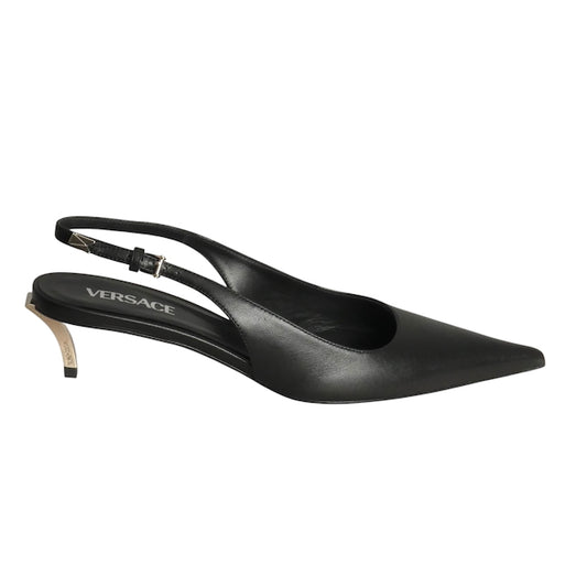 VERSACE- NIB Black Leather Sling Back Pumps, Size 40