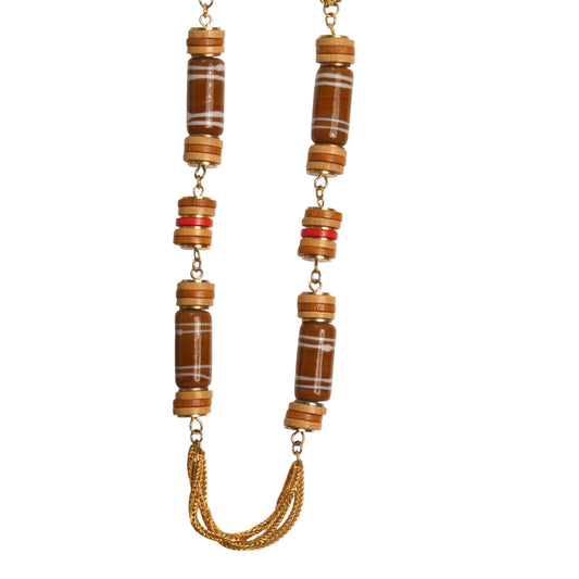 YVES SAINT LAURENT- 1980s Copper Bead, Ring & Tassel Necklace
