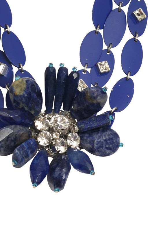 YVES SAINT LAURENT- 1980s Blue Lapis Flower & Rhinestone Necklace