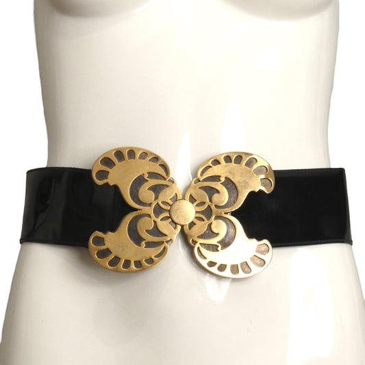 YVES SAINT LAURENT- 1970 Black & Gold Butterfly Belt, Waist-31"