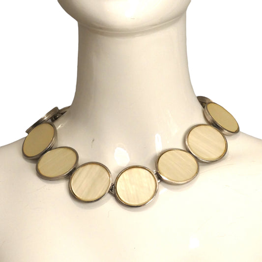 YVES SAINT LAURENT- 1983 Lucite & Silver Plastic Disc Necklace