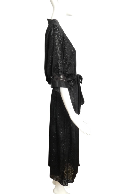 CHRISTIAN DIOR- 1980s Black Silk & Velvet Robe, Size Small