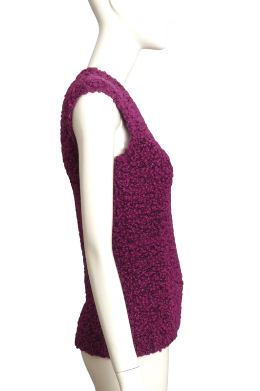 OSCAR DE LA RENTA- 1990s Purple Wool Boucle Sweater , Size Small