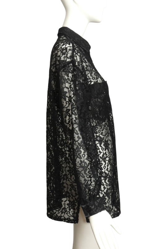 DIANE VON FURSTENBERG- 1970s Black Lace Blouse, Size 10