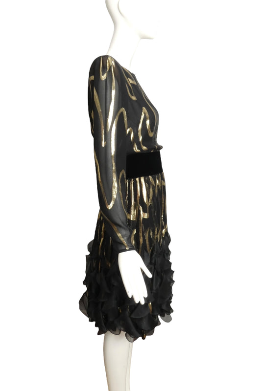 ALEXANDER MCQUEEN- 2007 Embroidered Silk Dress, Size 8