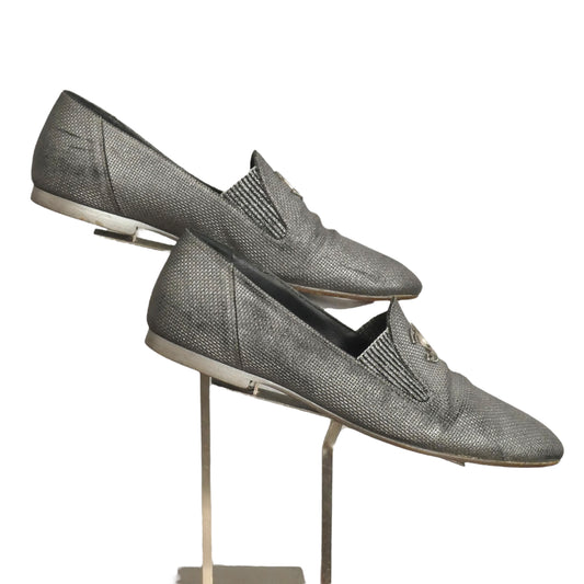 CHANEL- Silver Metallic "CC" Loafers, Size 39