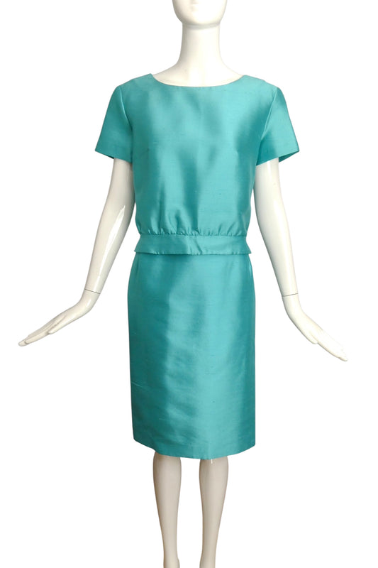 LILLI ANN- AS IS 1960s 3pc Blue Shantung Ensemble, Size 6