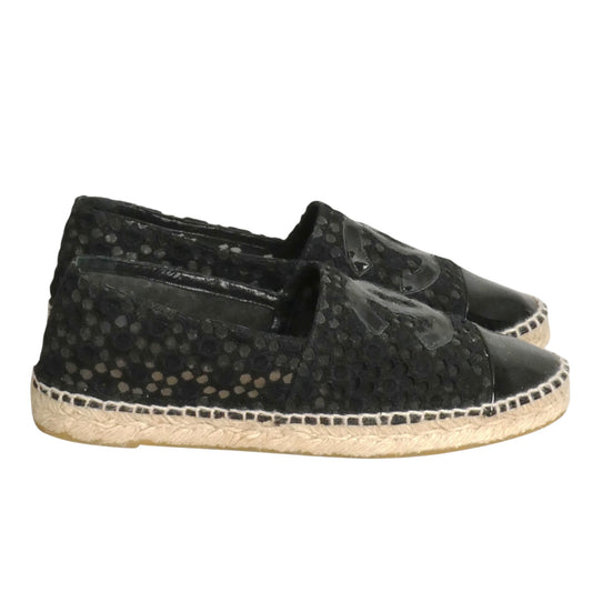 CHANEL- Black Patent & Lace Cap Toe Espadrilles, Size 39