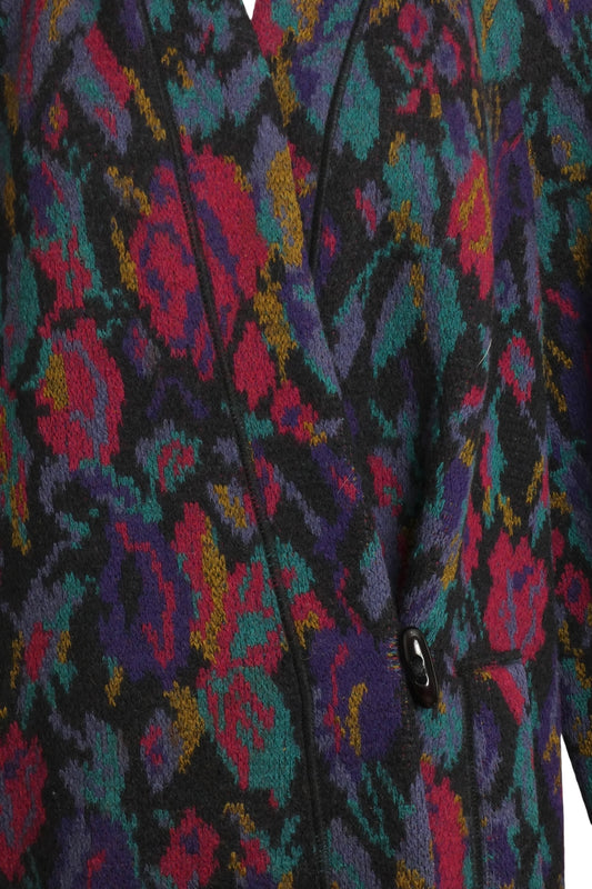 MISSONI- 1980s Multi Color Wool Knit Coat, Size 8