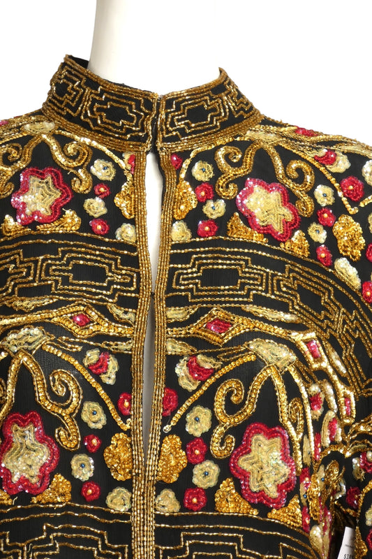1980s Beaded & Sequin Chiffon Coat, Size 16