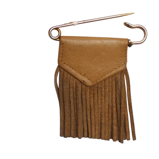YVES SAINT LAURENT- 1970s Tan Leather & Suede Fringe Skirt Pin