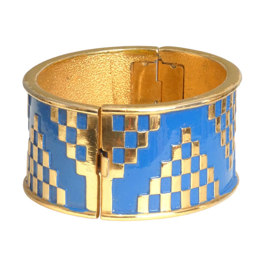 YVES SAINT LAURENT- 1980s Gold Metal & Blue Enamel Bracelet