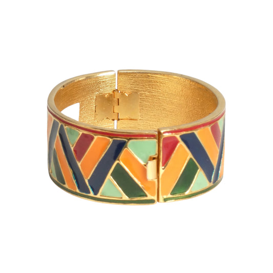 YVES SAINT LAURENT- 1980s Gold Metal & Multi Color Enamel Bracelet