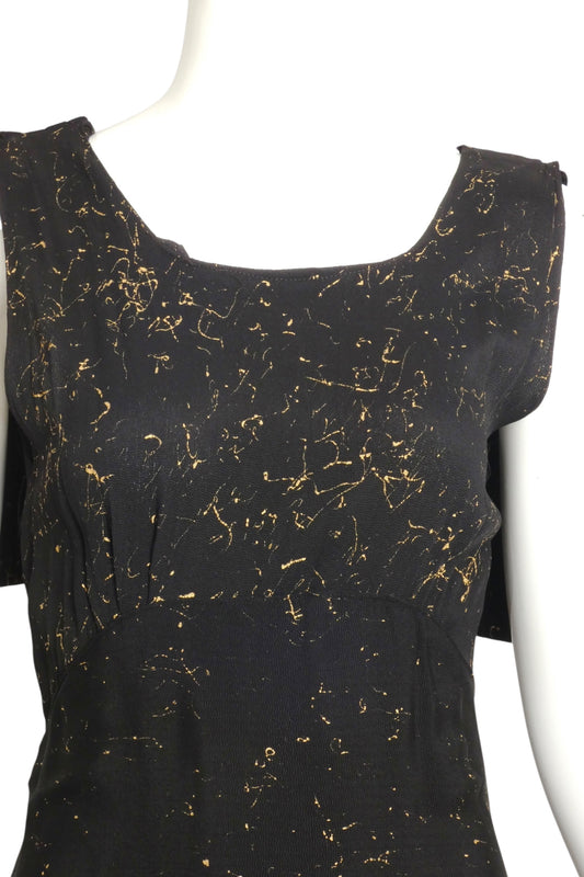 1930s Black & Gold Crepe Evening Gown, Size 8