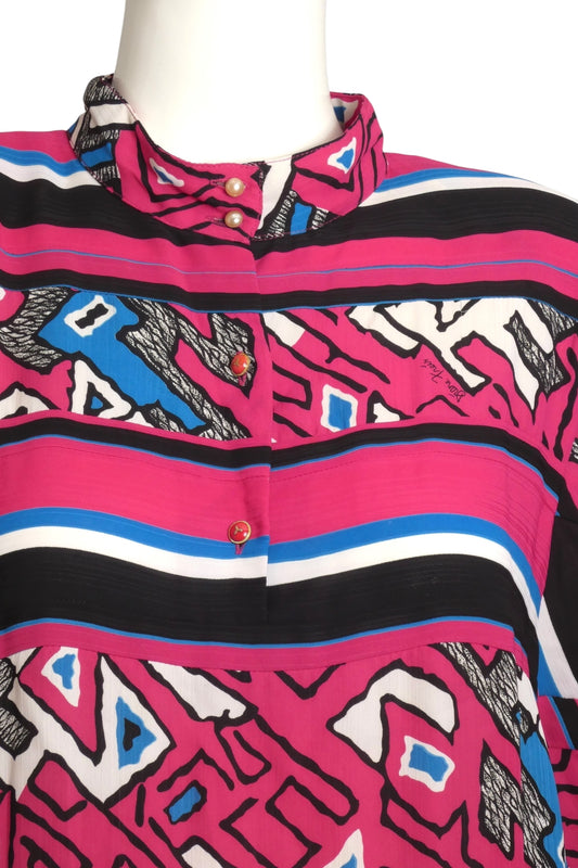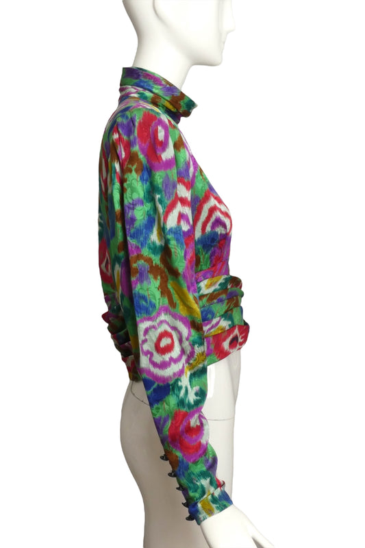 EMANUEL UNGARO- 1980s Floral Print Silk Blouse, Size 10