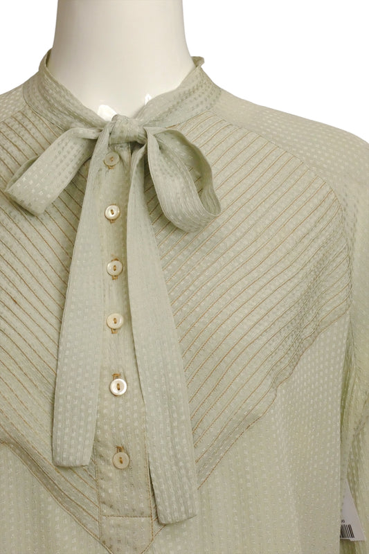 CHANEL- 1980s Floral Print Silk Blouse w/Bow, Size 12